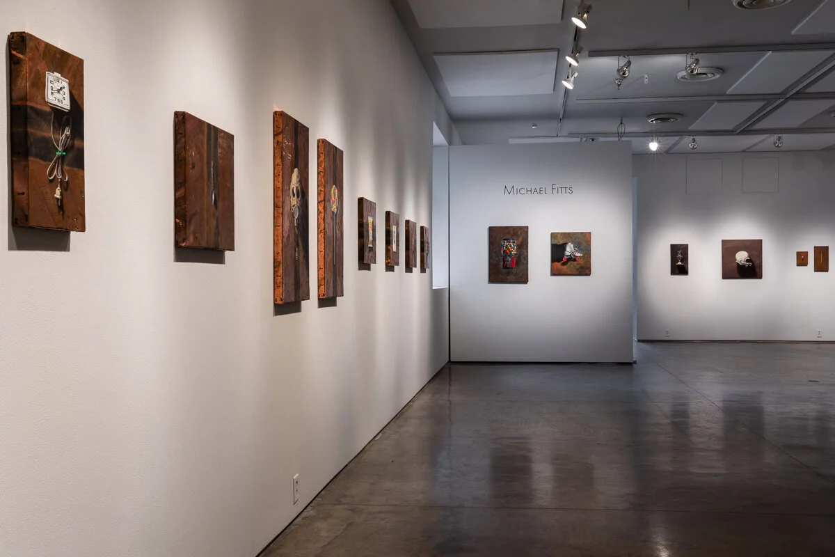Michael Fitts works in the trompe l’oeil tradition, painting his subjects on reclaimed metal. The metal surfaces, in their worn and distressed states, lend themselves effectively to Fitts/ studies, also objects of a distinctly temporal nature. Fitts’ paintings focus on familiar and transitory items- such old spoons, alarm clocks, and childhood toys; relics of the past that appear real enough to touch, and yet, just out of reach. Fitts lives and works in Charlottesville, VA, and has exhibited in exhibitions across the United States and in Europe. He is an associate member of the McGuffey Art Center in Charlottesville and a member of the Washington Project for the Arts in Washington, D.C. Originally trained as a graphic designer, Fitts is a self-taught painter who began painting to explore his creativity outside of his work.